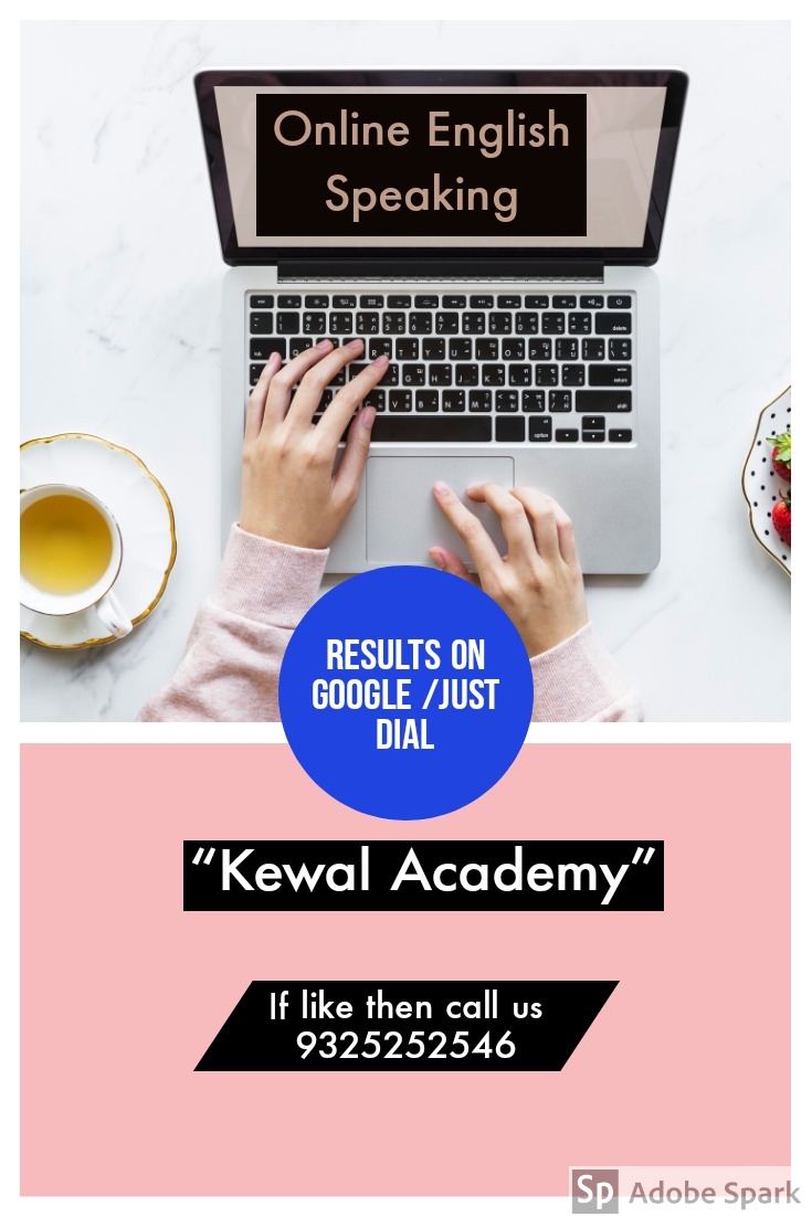 1)ONLINE ENGLISH SPEAKING , 2)PERSONALITY DEVELOPMENT, 3)MEMORY TECHNIQUES. 4)NEW BATCHES FROM TODAY 1 to 2 PM 6 to 7 PM 5)To Search our photos and ratings on just dial click here https://jsdl.in/DT-46BXWAPW Check out on Google! https://g.page/kewalacademy?gm **आधी Google Chrome वर 'Kewal Academy' टाकून ratings / reviews check करा . खात्री झाल्यावर प्रवेशासाठी फोन करा. *60 days live online training sessions will make your English fluent and impressive . *100% guaranteed assurance . *Live online sessions and full practice at same time. *Basic to advanced English. *Different sessions on grammar to understand its use in day today ( English) conversations. * Regular practice of conversation. * How to avoid spelling mistakes. * Special training on writing skills. * How to improve English vocabulary. * Special session on English pronounciation. * Special English sessions for impressive English. *Memory Techniques *Personality Development many more things. Limited seats. Spoken english English speaking Business ideas Learn english English speaking course Franchise india How to speak english How to learn english English talk Small business ideas Learning english English conversation Spoken english classes Learn english speaking How to improve english New business ideas English speaking course online How to speak english fluently Spoken english video Online work from home