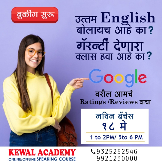 Are you searching the best Spoken English language class. Go on Google search "KEWAL ACADEMY " , read our ratings and reviews .