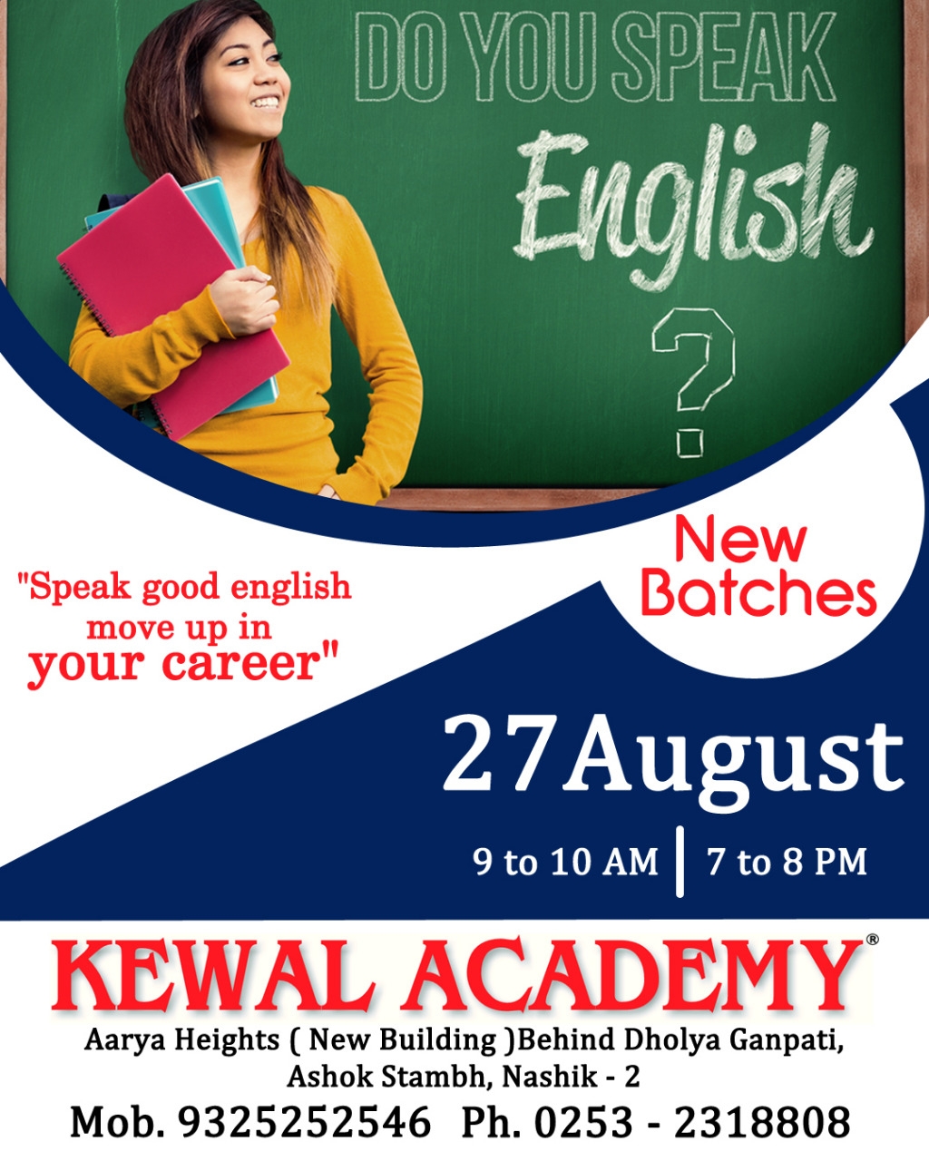 Best Spoken English institute in Nashik#Kewal Academy#New batches start from tomorrow#personality development#Memory techniques#Basic English course#adviced English course#sharad patil#Ashok Stambh classes#Highest rated spoken institute in Nashik for more information call on 93 25 25 25 46/9921230000