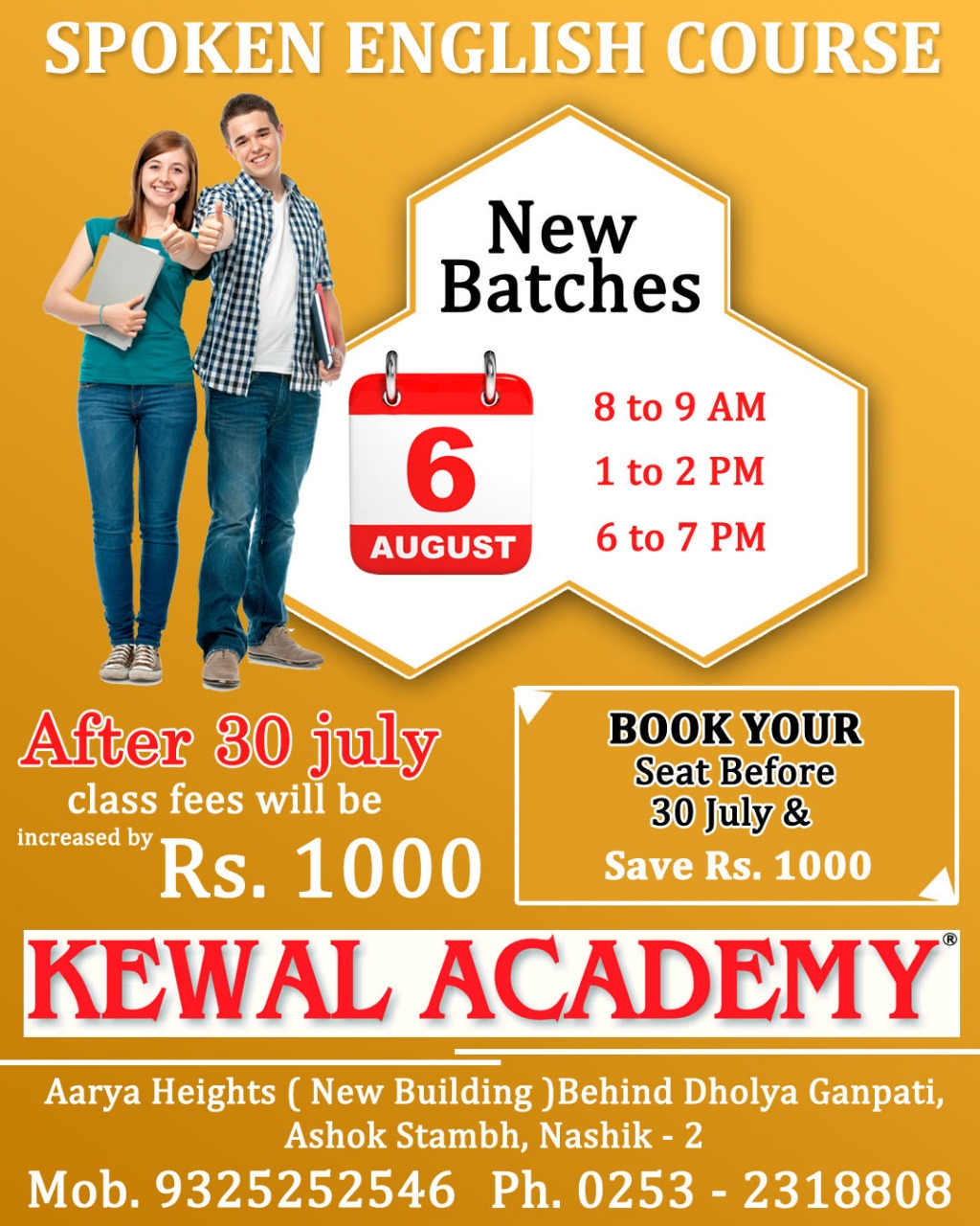 Book Your Seat before 30 July & save Rs.1000 After 30 July class fees will be increased by Rs.1000 New Batches start from 6th August 2019 Batch time 8 to 9 AM 1 to 2 PM 6 to 7PM 👇 @kewalacademy123 #learning #education #learn #school #teaching #art #teacher #motivation #study #student #reading #training #instagram #knowledge #students #english #english #speakenglish #course #offer #personality #pronunciation #competitive #personalitydevelopment #nashik