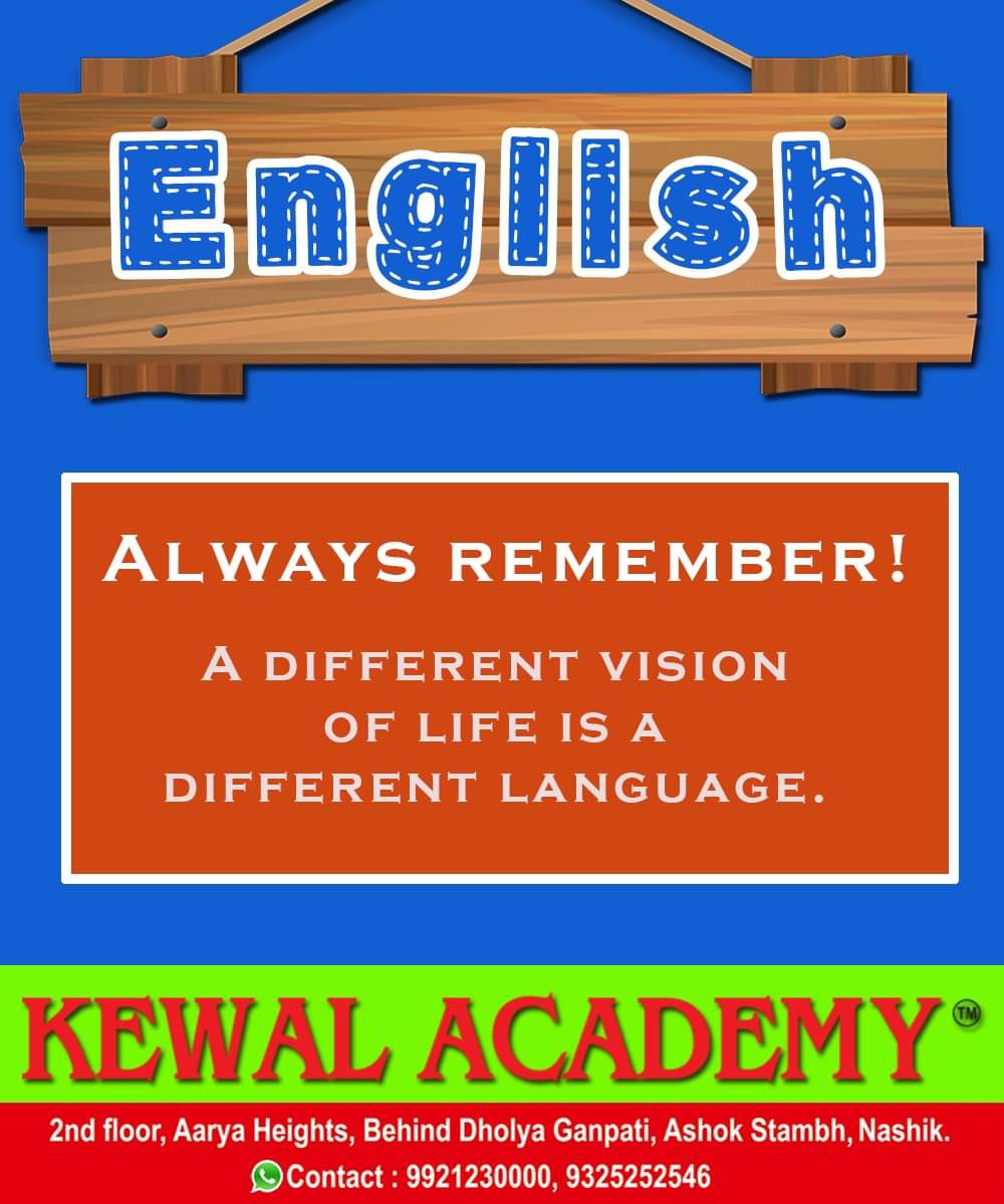 Four skills for English Speaking 1) Listening 2) Reading 3) Writing 4) Speaking Friends speaking English to think in English language is very important. The language in which we think is very easy for speakers to speak in that language. Kewal Academy works on that and creates friendly environment for students to speak English New batches are going to start from 15 August morning 8 to 9 /6 to 7 Pm