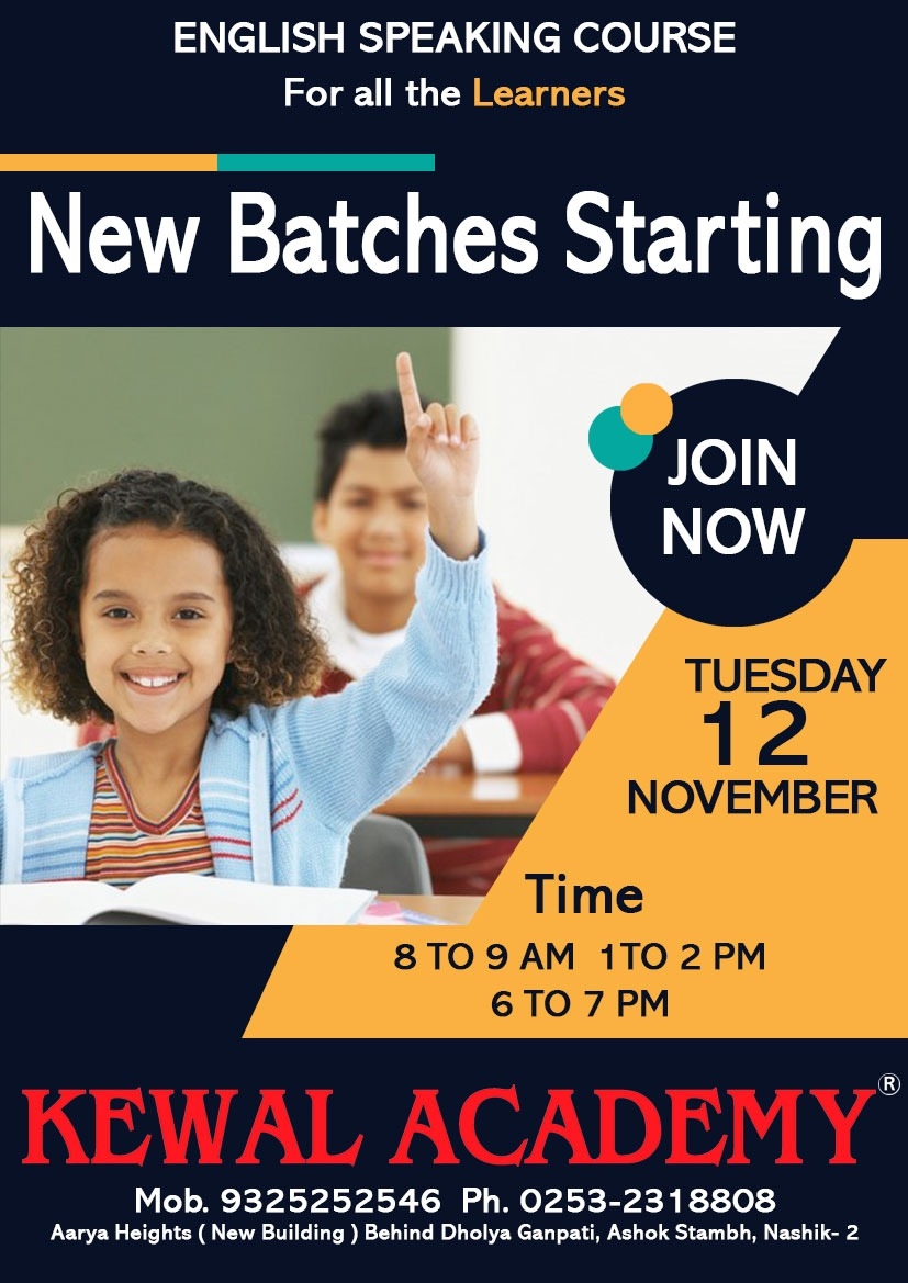 ๐โโ๏ธ๐โโ๏ธ๐โโ๏ธ๐โโ๏ธ!!! Hurry up..!!! Be ready your self for all job opportunities All job opportunity doors open with English speaking , public speaking skills.. The Highest rated spoken English Institute /class in nashik. ๐โโ๏ธ๐โโ๏ธ๐โโ๏ธ๐โโ๏ธ Admissions open for Spoken English course , English speaking course , personality Development , Memory Techniques ๐New Batches From: 12-November-2019 8 to 9 AM / 1 to 2 PM / 6 to 7 PM . English Speaking Spoken English Learn English English Speaking Institute English Speaking course How to speak English How to learn English English convention Spoken English Classes Personality Development Memory Techniques How to speak English fluently English Speaking on U tube Free English Speaking on U tube English speaking course , English conversation practice for Adults , English language classes , spoken English course , basic English , English writing for exams , backlog subject because of English , how to speak English on stage , presentation on stage in English , Advanced English grammar , Grammar classes in Diwali holidays , Special spoken English batches for elders , 100 % Guaranteed spoken English course , memory techniques for writing examination papers in English. Teaching is done by famous spoken English teacher I. e. Mr . Sharad Patil New batches 12 November , morning , afternoon , evening parallel English speaking batches , enrollment stated , so don't postponed for long periods , right now take decision.