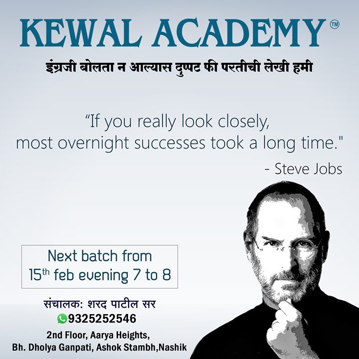 If you really look closely, most overnight successes took a long time #KewalAcademy #NewBatch #Starts #Today #15th #Februaury #Kewal #Classes #EnglishSpeaking #Buid #Personality #Confidence #Perfect #CommondOnEnglish #LearnEnglishSpeaking #EnglishClasses