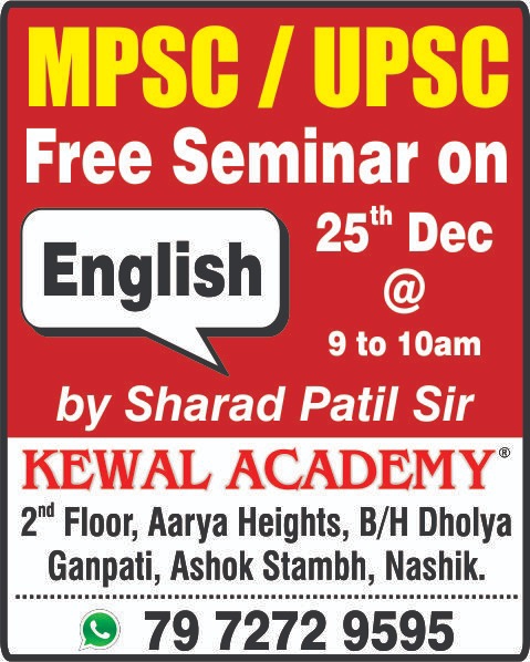 MPSC / UPSC free seminar (sub - English) on 25 November at 9 to 10 am by Sharad Patil sir