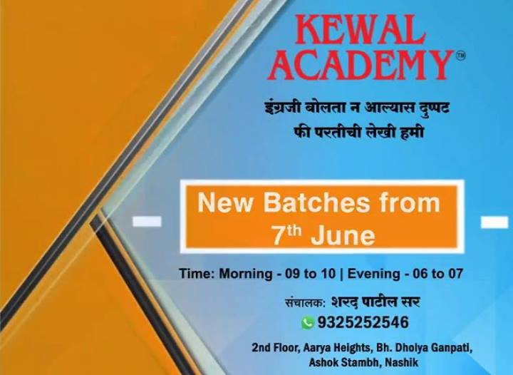 New Batches from 7th June. Hurry up! Limited seats only. Rush to Kewal Academy's office at Ashok stambh, Nashik. #SpokenEnglish #EnglishSpeaking #KewalAcademy #Classes #CoachingClasses #Nashik #BestTution #TutionClasses #Academy #teaching #BestTeacher #PersonalityDevelopment
