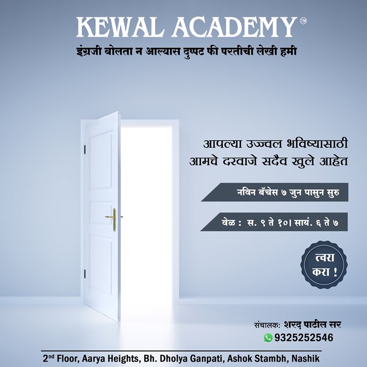 New Batches from 7th June. Hurry up! Limited seats only. Rush to Kewal Academy's office at Ashok stambh, Nashik. #SpokenEnglish #EnglishSpeaking #KewalAcademy #Classes #CoachingClasses #Nashik #BestTution #TutionClasses #Academy #teaching #BestTeacher #PersonalityDevelopment