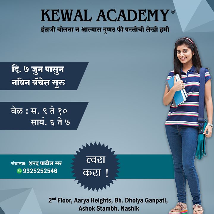 New Batches from 7th June. Hurry up! Limited seats only. Rush to Kewal Academy's office at Ashok stambh, Nashik. #SpokenEnglish #EnglishSpeaking #KewalAcademy #Classes #CoachingClasses #Nashik #BestTution #TutionClasses #Academy #teaching #BestTeacher #PersonalityDevelopment